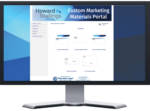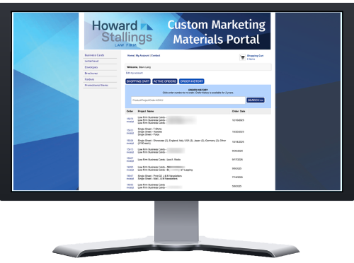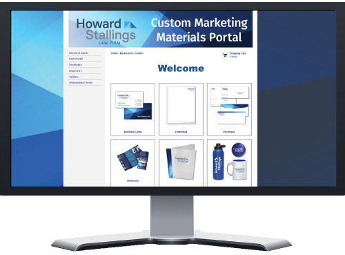 Managing print materials across a law firm shouldn’t involve emails, version issues, or constant back-and-forth. Our custom print portal gives your team a centralized, on-demand system to order everything from business cards to branded materials—fully pre-approved, fully compliant, and fully consistent with your firm’s identity. With customizable products, built-in approval workflows, and a secure, branded ordering experience, you gain control, eliminate errors, and keep your firm looking sharp at every touchpoint.