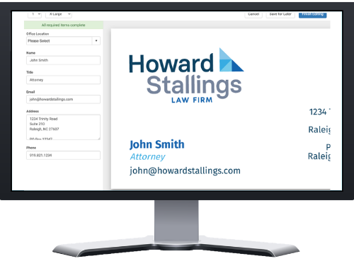 Give your team the flexibility they need without sacrificing consistency. Attorneys and staff can personalize approved materials—like names, titles, contact details, and office locations—while every design stays locked to your firm’s branding standards. No more formatting issues, off-brand layouts, or costly reprints—just clean, consistent materials every time.